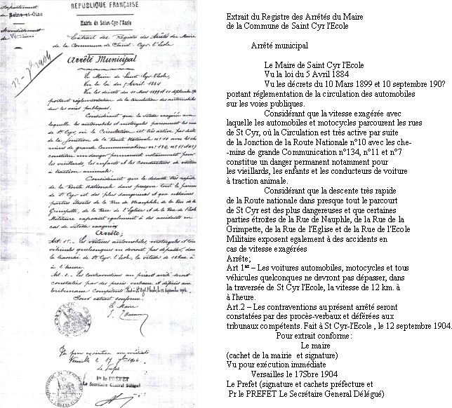En 1904 la circulation des engins à moteur était déjà un problème pour la population. Aussi le maire publia un arrêté limitant la vitesse à 12km/heure!